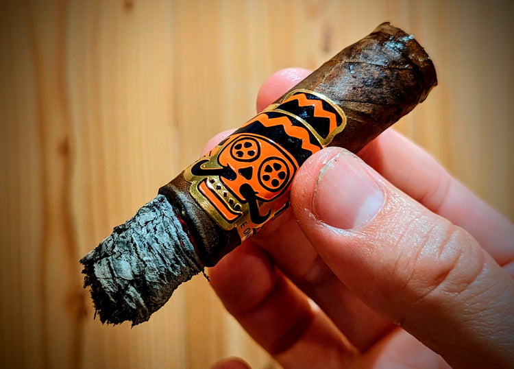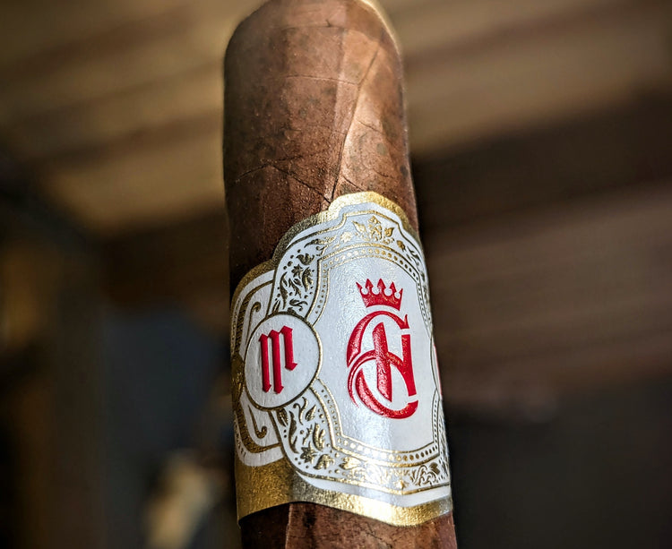 The wrapper is a bit veined, but this is a Honduran Connecticut wrapper we're talking about here, so there's room for a bit of forgiveness in that regard. This toro vitola also feels quite stout, with a nice, tight feel trailing down the length of the cigar.