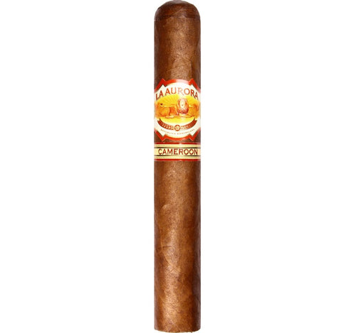 La Aurora Cameroon gets its name from Cameroon, Africa, where its red and shiny wrapper was formerly harvested. This special cigar was inspired by the story of Eduardo León Jimenes, who was originally a salesman for his father's farm in Guazumal, Tamboril before founding La Aurora. One of the leaves he absolutely fell in love with was Cameroon wrapper, a leaf with a shiny reddish hue and a rough texture that has been found dressing La Aurora smokes since 1903.