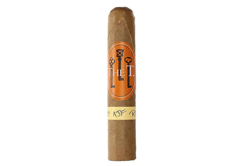 Similar to the original, The T. Connecticut features a well-balanced blend of Nicaraguan binder and filler, but replaces the Mexican San Andres wrapper with an Ecuadorian Connecticut. The result is a medium-bodied cigar offering flavors of toasted cocoa, vibrant spice, and a touch of nuttiness. Pictured here in the Lonsdale size.